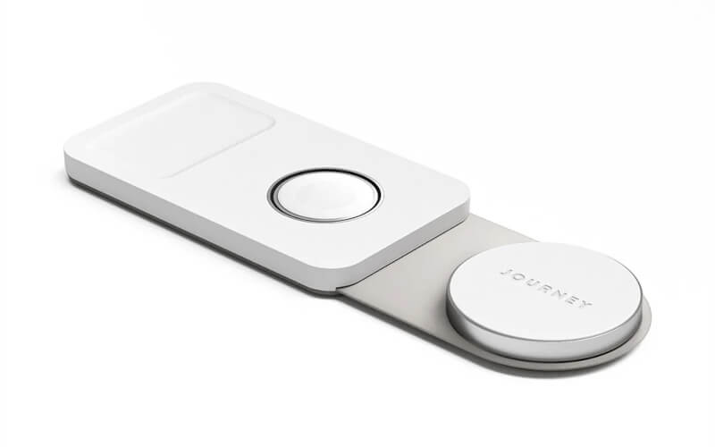 Power your Iphone, Apple Watch Airpods all at once, no cords required. When not in use, this charging station folds up to the size of your phone.